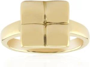 eleganter Ring aus 925 Sterling Silber, goldplattiert, modern minimalistisch mit glänzender quadratischer Platte, 21x19 mm, vielseitiger Schmuck für Damen
