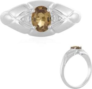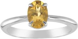 Silberring mit gelbem Zirkon 1,888 ct oval aus Tansania, 925 Sterling Silber platinierter Ring mit 2 kleinen Zirkonen 0,04 ct Rundschliff, elegantes Design