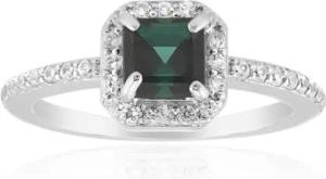 Indigolith Ring – Grün Turmalin Ring Silber, quadratischer Schliff, 0,361 ct, platinierter 925er Silberring, moderner Damenring mit Edelstein aus Brasilien