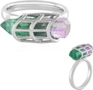 Mehrfarbiger Quarz-Silberring 925 Sterling Silber, Modernes Käfigdesign mit Grün und Rosa Quarz, Eleganter Schmuck aus Brasilien, 27x23 mm, MONOSONO COLLECTION