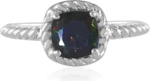 Mezezo Opal Ring 0,63 ct aus 925 Sterling Silber mit antikem Kissenschliff, äthiopischer Opal in Blau-Grün schillernd, eleganter strukturierter Silberring, moderner Stil