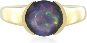 Welo Opal Ring 0,718 ct Äthiopischer Opal im Rundschliff, Gelbvergoldetes 925er Sterling Silber, Moderner eleganter Schmuck, 23x20 mm, Farbintensives Schmuckstück