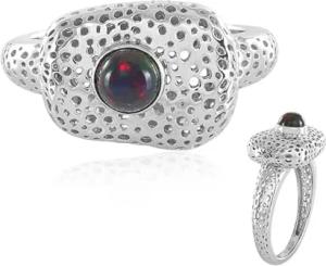 Mezezo Opal Ring mit 0,366 ct äthiopischem rundem Cabochon in platinbeschichtetem 925er Silber - moderner, strukturierter Silberring aus MONOSONO COLLECTION, ca. 26x21 mm