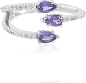 Purpursaphir Ring 925 Sterling Silber platinierter Ceylon Saphir Tropfenschliff Unbehandelter 0,65 ct mit Zirkon 1 ct Eleganter moderner Silberring lila Schmuck Damen