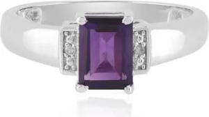 Sambia Ring mit 0,81 ct Amethyst Oktagonschliff und 2 funkelnden I2 (J) Diamanten 0,009 ct in 925 Sterling Silber, moderner eleganter lila Edelsteinring für Damen