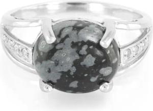 Schneeflocken-Obsidian Silberring Damen 3,43 ct ovaler Cabochon mit 8 funkelnden weißen Zirkonen 925 Sterlingsilber eleganter Winterstyle Ring Größe 18-20