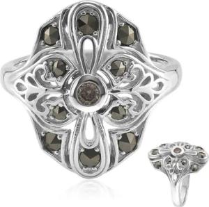 SI1 Argyle Rose de France Diamant Silberring mit Brillantschliff und Markasiten, eleganter 925 Sterling Silberring, vintage-inspiriertes Design, 0,378 ct