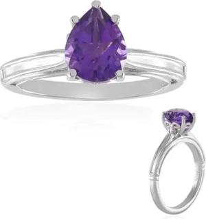 Sibirischer Amethyst Ring 1,355 ct Tropfenschliff, Eleganter Ring aus platinisiertem 925 Sterling Silber, Violett, modernes Design, Schmuck aus Russland