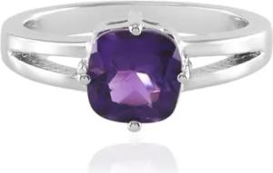 sibirischer Amethyst Ring Silber – 1,214 ct antiker Kissenschliff, platiniertes 925 Sterling Silber, Amethyst Silberring Damen, Made in Russland, elegantes Split-Shank-Design