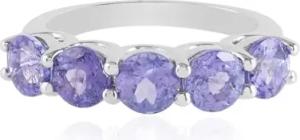 Tansanit Ring Damen 925 Sterling Silber platinierter Edelsteinring mit 5 rundem Brillantschliff Tansaniten in lebendigem Violett, modern eleganter Schmuck 2,679 ct