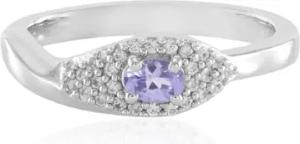 Tansanit Ring Silber 925er Sterlingsilber mit ovalem Brillantschliff Tansanit 0,184 ct und funkelndem Zirkon Halo 0,186 ct, platiniert, modern elegant violett
