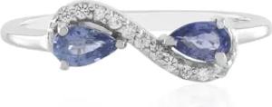 Unendlichkeit Silberring 925 platiert mit 2 nicht erhitzten blauen Ceylon-Saphiren Tropfen 0,431 ct & 11 weißen Saphiren Madagaskar 0,106 ct elegant modern