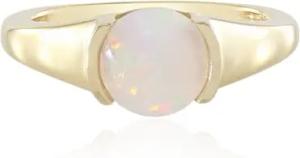 Mezezo Opal Silberring mit 3,319 ct Äthiopischem Opal, 925er Sterling Silber vergoldet, runder Cabochon, moderner eleganter Statement Ring, goldfarben