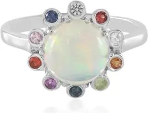 Welo-Opal-Ring aus platinisiertem 925er Silber, 2,305 ct äthiopischer Opal Cabochon, 10 farbige Madagaskar Saphire 0,4 ct, eleganter runder Silberring Größe 17-20