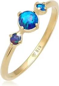 Ring Damen Band Basic Geo mit Synthetischem Opal in 925 Sterling Silber