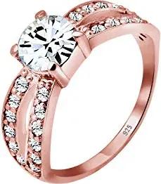 Ring Damen Verlobung mit Kristall in 925 Sterling Silber