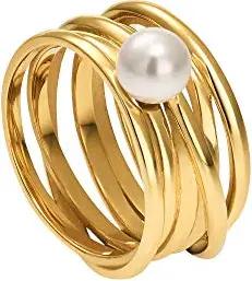 Heideman Ring Damen aus Edelstahl silber gold farbend poliert Damenring für Frauen mit Perle Margarita