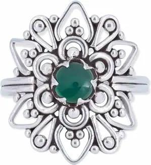 Ring Silber 925 Damen grünen Onyx Edelstein grün ausgefallen verspielt