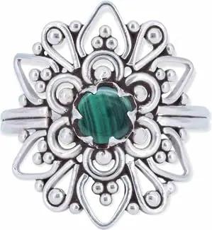 Silber Ring Damen 925 Malachit Edelstein grün dezent verspielt