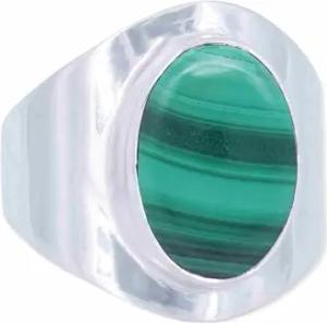 Damen Ring 925 Silber Malachit Edelstein grün schlicht groß modern