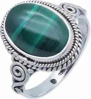 Damen Ring 925 Silber Malachit Edelstein grün ausgefallen verspielt