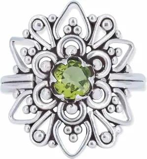 Damen Ring Silber mit Stein Peridot Edelstein grün ausgefallen verspielt