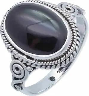 Ring 925 Silber Damen Onyx Edelstein schwarz ausgefallen verspielt