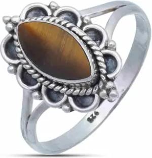 Ring Silber Damen Tigerauge Edelstein braun ausgefallen verspielt