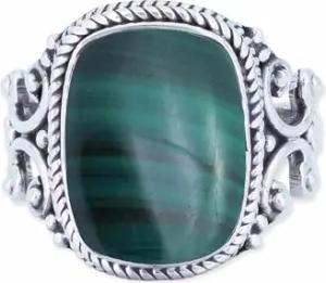 Damen Ring Silber mit Stein Malachit Edelstein grün ausgefallen verspielt