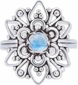 Silber Ring Damen 925 Regenbogen Mondstein Edelstein weiß ausgefallen verspielt