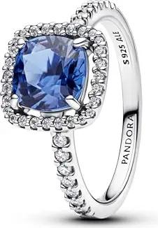 Damenring Silber Funkelndes Quadrat Blau Heiligenschein 193550C01-50 Ringgröße 50/15,9