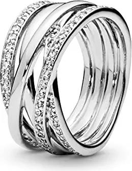 199057C01 Damen-Ring Silber Dreifach Gekreuzte Pavé Schienen