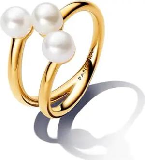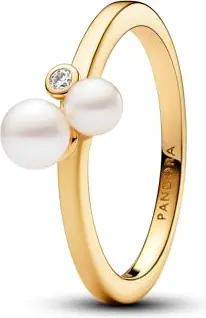 Timeless Duo Behandelte Süßwasserzuchtperlen Ring aus Sterling Silber mit vergoldeter Metalllegierung und Zirkonia, Größe: 58, 163156C01-58
