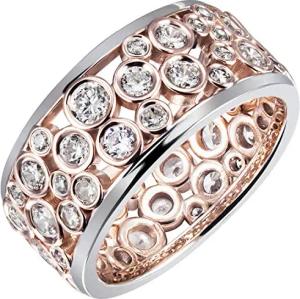 Breiter Ring aus 925 Silber bicolor vergoldet mit 55 weißen Zirkonia Fingerring, Ringgröße:Innenumfang 52mm ~ Ø16.6mm