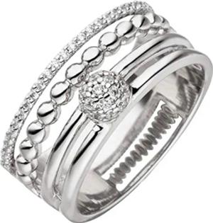Damen Ring 4-teilig aus 925 Silber mit 30 Zirkonia Kreis Kreuz spitzoval Quadrat, Ringgröße:Innenumfang 60mm ~ Ø19.1mm
