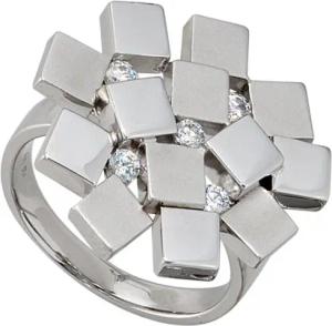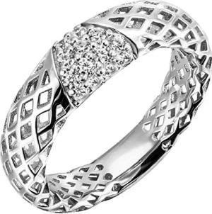 Ring mit 14 Zirkonia weiß 925 Silber rhodiniert Damenring glänzend Netz-Muster, Ringgröße:Innenumfang 56mm ~ Ø17.8mm