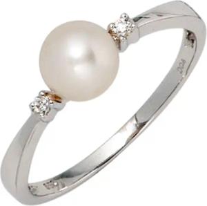 Damenring Ring Perle & Diamanten Brillanten 585 Gold Weißgold Damen Goldring, Ringgröße:Innenumfang 56mm ~ Ø17.8mm