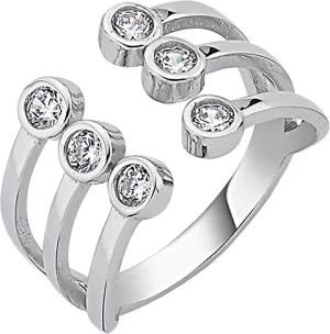Offener Ring Damenring aus 925 Silber rhodiniert 6 Zirkonia breiter Fingerring, Ringgröße:Innenumfang 62mm ~ Ø19.7mm