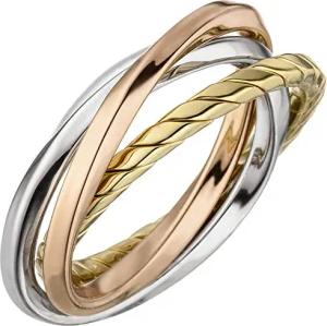 Ring Damenring 3 überkreuzte Ringe aus 925 Silber rhodiniert gelb-rot-vergoldet, Ringgröße:Innenumfang 52mm ~ Ø16.6mm
