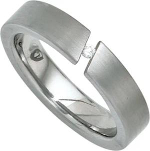 Ring Damenring aus Edelstahl mattiert mit Diamant Brillant schlicht, Ringgröße:Innenumfang 52mm ~ Ø16.6mm