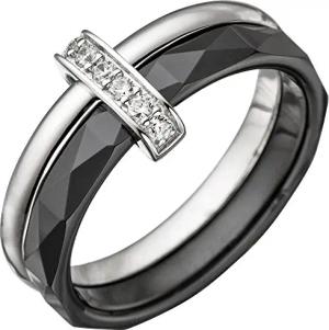 Ring Damenring aus Keramik schwarz & 925 Silber mit Zirkonia weiß Fingerring, Ringgröße:Innenumfang 52mm ~ Ø16.6mm