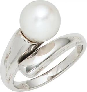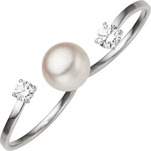 Ring Damenring für zwei Finger mit Süßwasser-Perle Zirkonia, 333 Gold Weißgold, Ringgröße:Innenumfang 54mm ~ Ø17.2mm