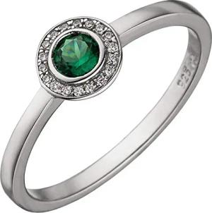 Ring Damenring mit 19 Zirkonia grün & weiß Ringkopf rund 925 Silber rhodiniert, Ringgröße:Innenumfang 58mm ~ Ø18.5mm