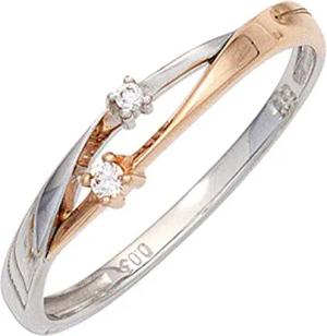 Ring Damenring mit 2 Diamanten Brillanten 585 Gold Weißgold Rotgold bicolor, Ringgröße:Innenumfang 52mm ~ Ø16.6mm