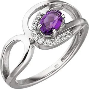 Ring Damenring mit Amethyst lila violett 11 Zirkonia 333 Gold Weißgold B: 9,9mm, Ringgröße:Innenumfang 52mm ~ Ø16.6mm