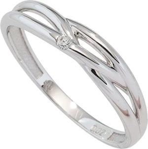 Solitär Damen-Ring mit Diamant Brillant 0,07 Ct. 585 Gold Weißgold Diamantring, Ringgröße:Innenumfang 60mm ~ Ø19.1mm