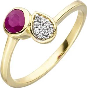 Ring Damenring mit Rubin rot & 9 Zirkonia weiß 333 Gold Gelbgold Kreis & Tropfen, Ringgröße:Innenumfang 50mm ~ Ø15.9mm