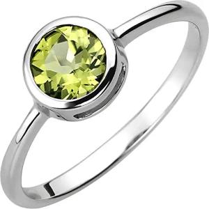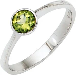 Solitär Ring aus 925 Silber mit Peridot grün rund Fingerring Edelsteinring, Ringgröße:Innenumfang 54mm ~ Ø17.2mm