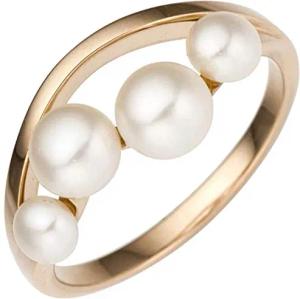 Ring Damenring Perlenring Süßwasser Zuchtperle weiß 585 Gold Gelbgold, Ringgröße:Innenumfang 54mm ~ Ø17.2mm