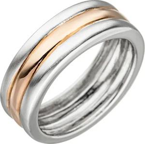 Ring Fingerschmuck 3-reihig teilmattiert 925 Silber Rotgold vergoldet bicolor, Ringgröße:Innenumfang 52mm ~ Ø16.6mm